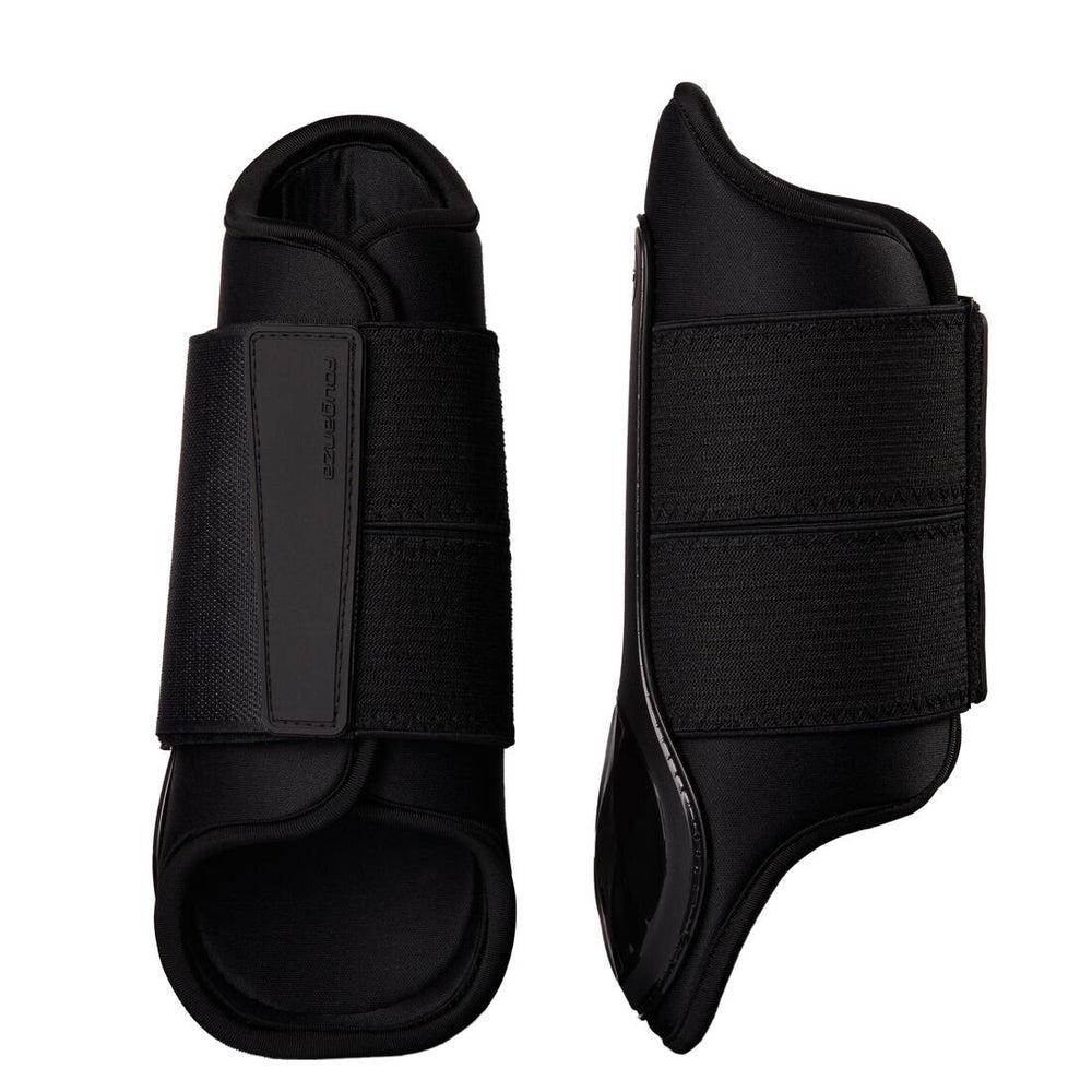 Una de las prioridades de nuestros diseñadores Fouganza es que el caballo esté cómodo durante el trabajo y en paseo: por ello, diseñamos estas polainas cerradas, que se adaptan perfectamente a cada caballo. Con una calota exterior trabajada, moldeada en plástico flexible y resistente y una espuma interior lisa de 6 mm, las polainas 500 rodean las patas de tu caballo para evitar las rozaduras, protegen las patas y los tendones de los golpes y no impiden la libertad de movimientos.