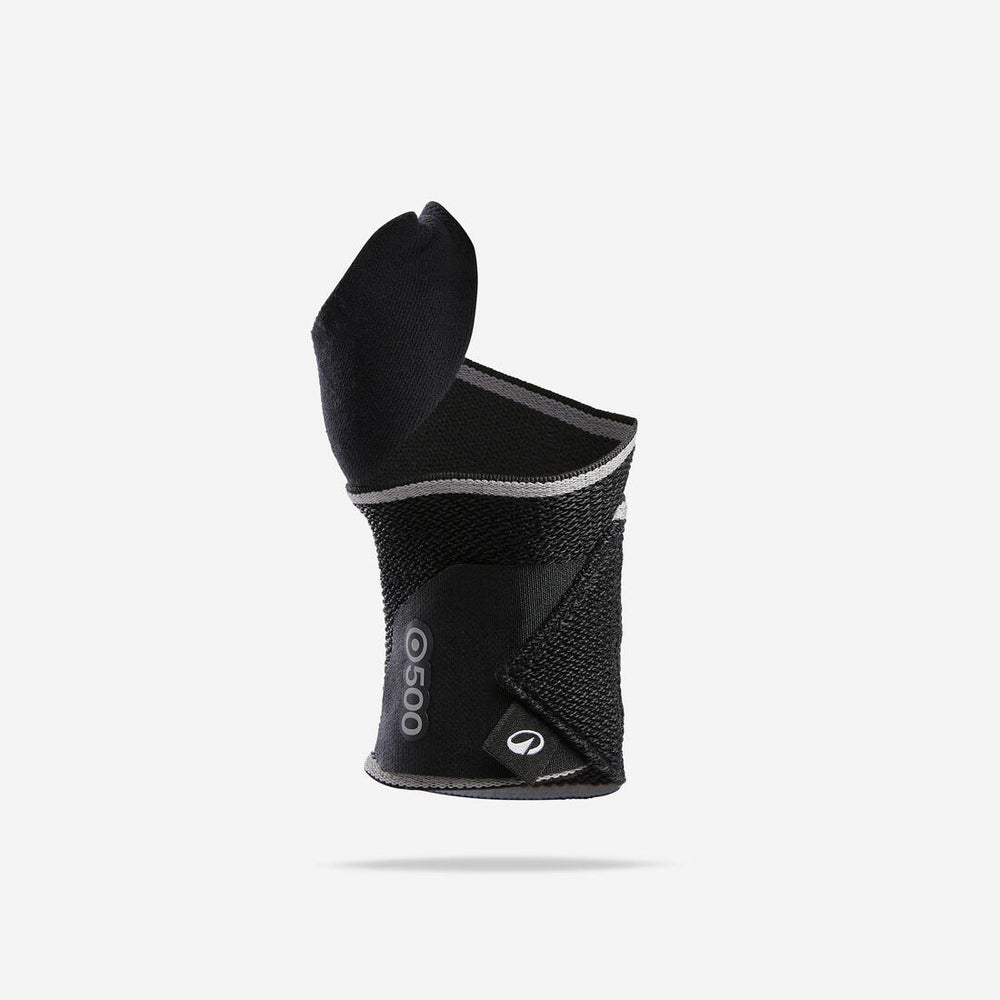 Esta sujeción para la muñeca se usa durante todas las actividades físicas. Fácil de poner gracias a su posicionamiento en el pulgar y a su ajuste, su materia transpirable y su forma adaptada a la mano hacen que tu sesión sea más cómoda. Adecuado para la muñeca derecha o izquierda.