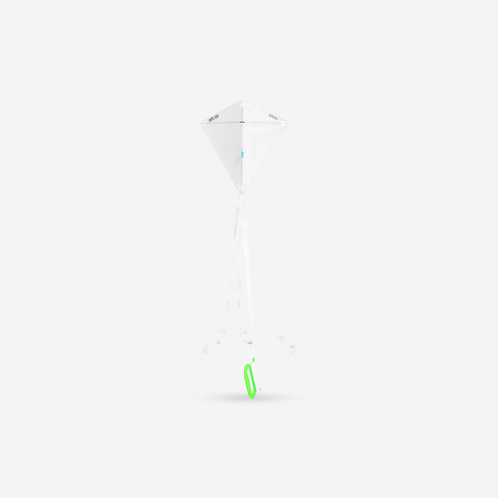 Un papalote que puede volar solo o en «tren»; está equipado con un gancho de fijación que permite conectar varios papalotes, uno tras otro Papalote con mando de pilotaje y línea de 36 m Se entrega montado Dimensiones: 40 cm de envergadura/130 cm de altura (de ellos, 90 cm de cola)