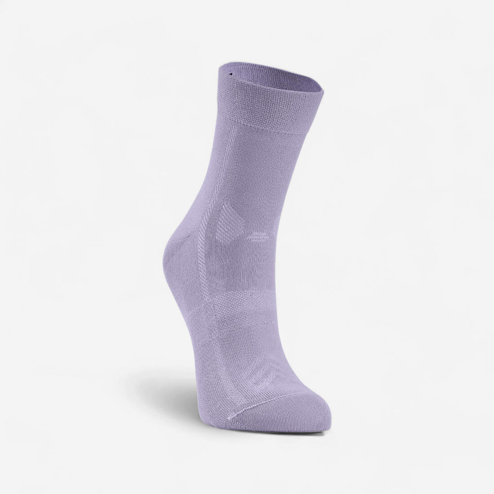 Este par de calcetines B'TWIN 500 evacúa el sudor y aporta comodidad durante las salidas regulares gracias al componente ligero.