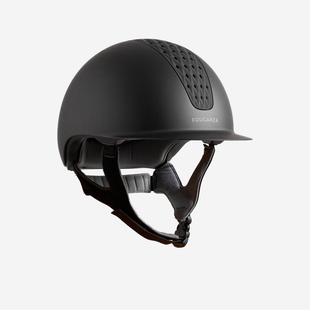 Era uno de los retos de nuestros ingenieros: crear un casco resistente, sólido, ligero y supercómodo. Para conseguirlo, el equipo Fouganza trabajó la ergonomía del enganche, que se adapta a la forma de la cara del jinete. De poliéster, blando y muy suave ¡comodidad de verdad! El gorro es desmontable y lavable, se fija al casco mediante un sistema de tiras autoadherentes y tiene espuma en ubicaciones precisas para reducir los puntos de presión en la cabeza.