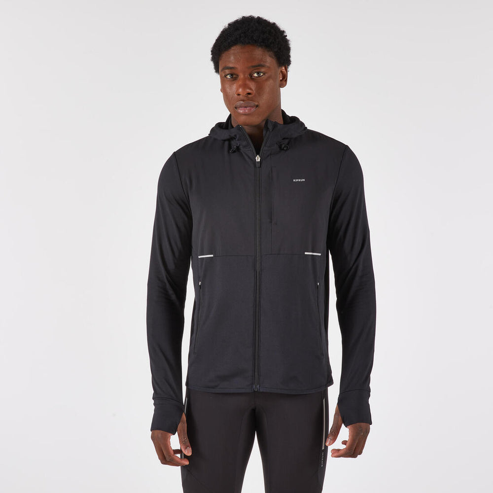 ¡Enfrenta el frío sin límites! Chamarra de running que ofrece calidez, transpirabilidad, capucha protectora, bolsillos seguros y aberturas para pulgares para un rendimiento óptimo con clima fresco