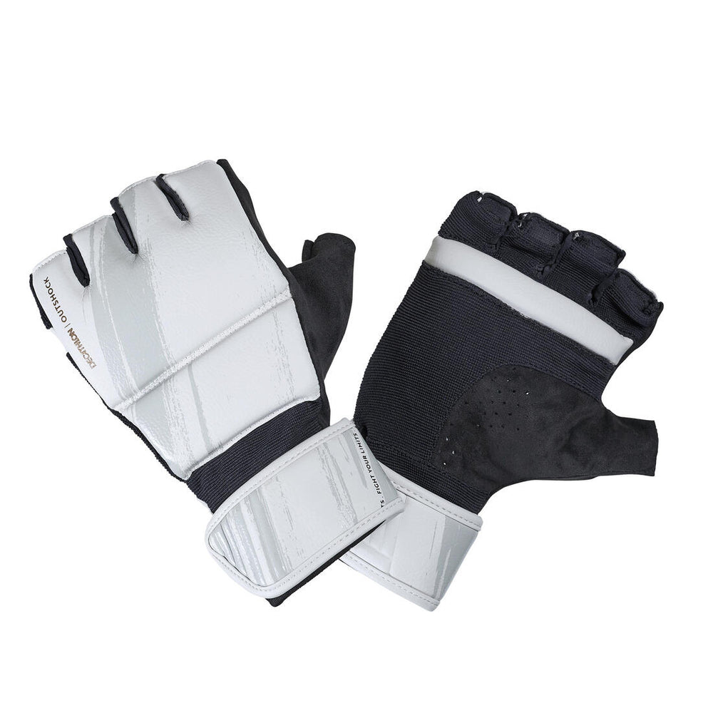 ¿No es fácil levantar unas mancuernas con unos guantes de boxeo? Para no tener que cambiar de equipo para realizar cada ejercicio, te aconsejamos usar guantes cortos en lugar de guantes regulares en las sesiones de cardioboxing. Con su sujeción en el interior de la mano, el modelo Cardio 100 te ofrece buenas sensaciones tanto al cerrar el puño como en los ejercicios de suelo (flexiones, burpees, etc.). Además, su palma, de ante sintético y caucho, resiste el sudor y deja que la mano respire.