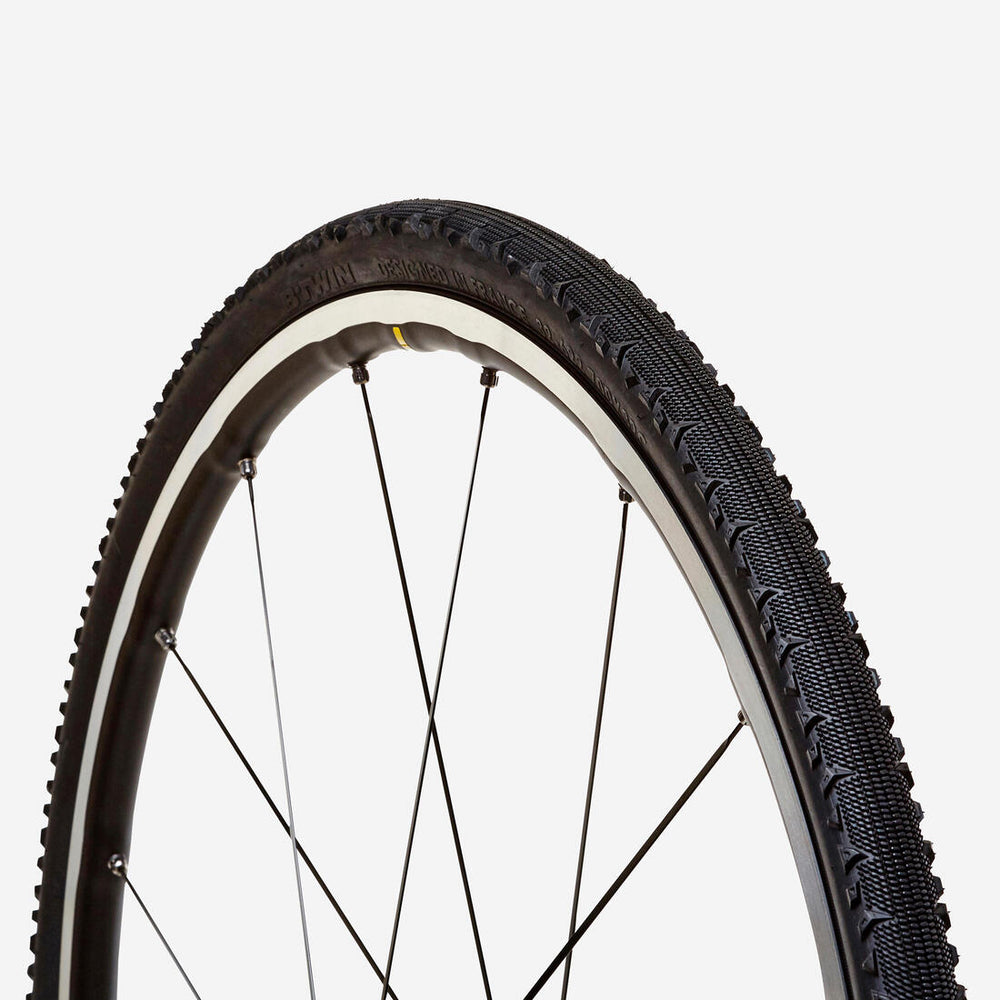 Llanta gravel muy resistente para entrenamientos por carretera y caminos. Ancho de 32 mm para mayor confort.