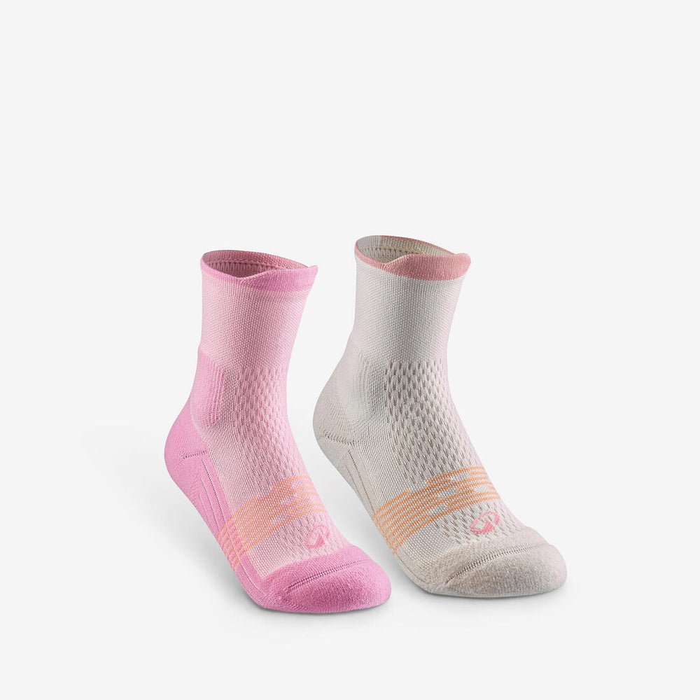 Dependiendo del calzado que utilices, elige entre nuestras tres alturas de calcetines diseñados para el senderismo. Existen modelos "cortos" para un confort discreto bajo el tobillo, modelos "medios" para proteger el tobillo con calzado de caña baja y modelos "altos" para sujetar el pie con calzado de caña alta.