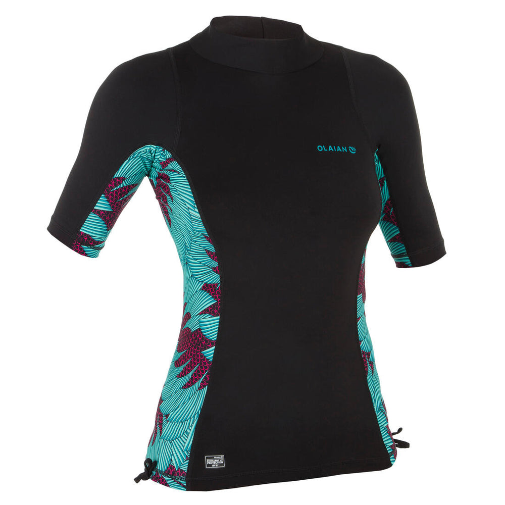 Playera anti-UV de manga corta para protegerse del sol incluso en el agua y limitar las irritaciones por contacto con la tabla. Nudos dobles para asegurar la sujeción en las olas.