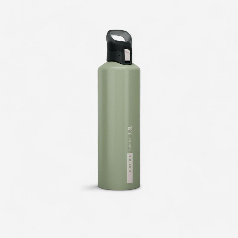 Resistente y de aluminio, esta cantimplora con su tapón bloqueable de apertura rápida te acompañará en tus salidas de senderismo y tus desplazamientos diarios (1.5 L).