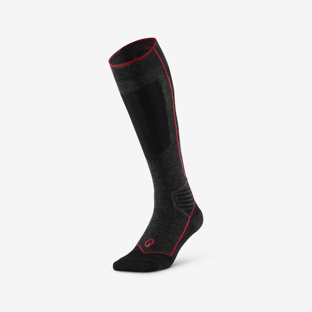 Por su alto contenido de lana, este calcetín de ski ofrece resistencia, buen poder aislante y gran capacidad de absorción de la humedad.