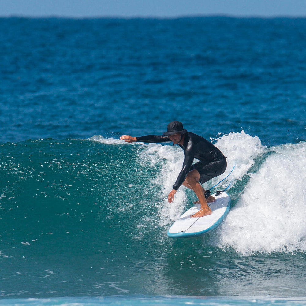 ¿Lo sabías? El 10-15% de los rayos UV se refleja en el agua, mientras que el 40-95% llega hasta 25 cm bajo el agua. Por eso es imprescindible combinar el boardshort con una protección solar extra (playera anti-UV, etc.) para practicar en aguas cálidas.