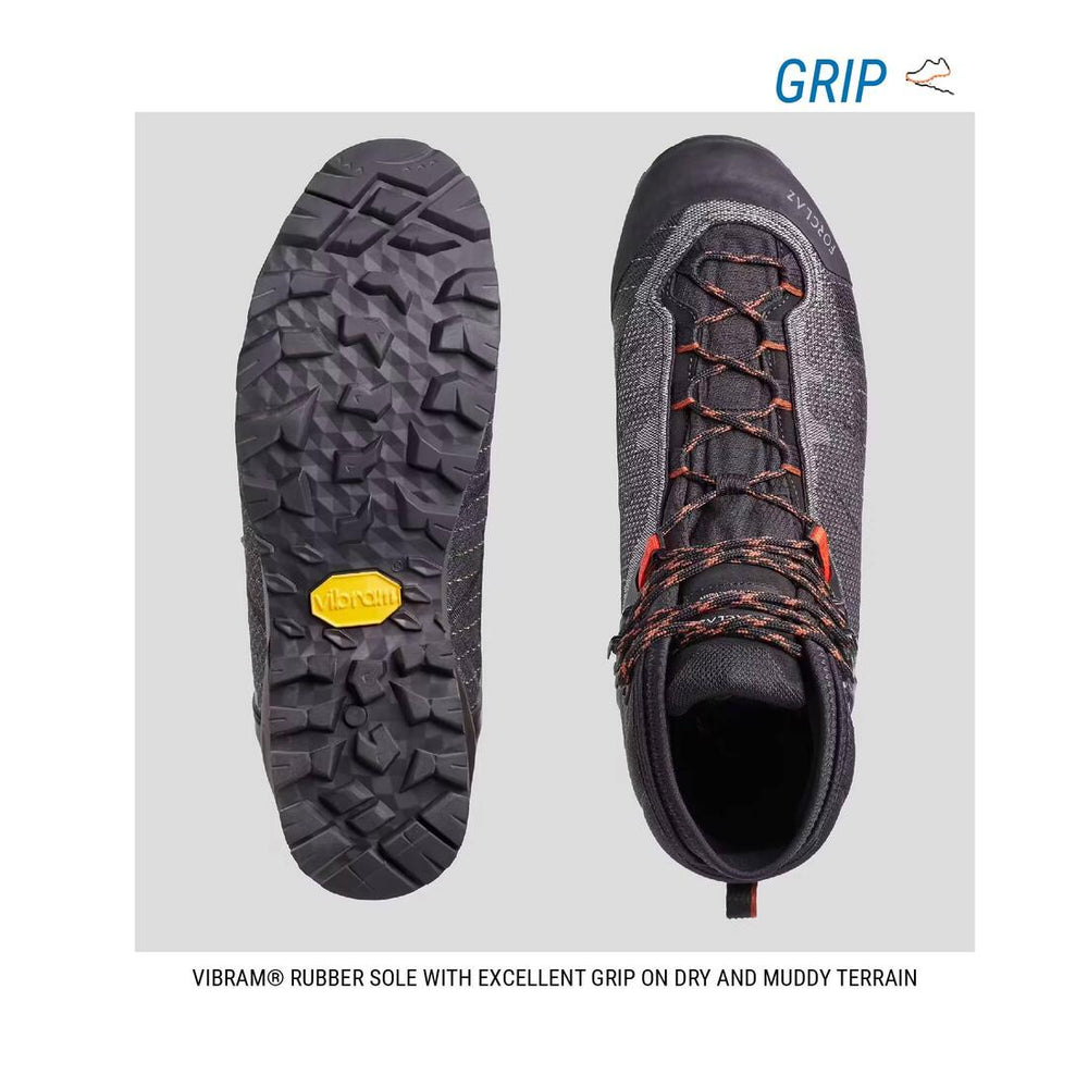 La adherencia de nuestras suelas tiene el sello de calidad VIBRAM®, lo que ofrece un excelente agarre en cualquier terreno seco, de tierra o rocoso. ¡Formidable! El relieve de tacos VIBRAM® te aportará también una capacidad de agarre adaptada a terrenos resbaladizos y húmedos.