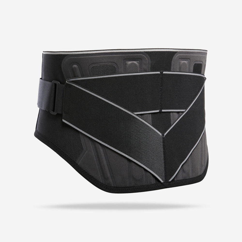 El uso de este cinturón lumbar, equipado con refuerzos traseros flexibles y amplias correas para un soporte reforzado de nivel 4 de 5, es adecuado durante el esfuerzo. Fácil de poner y ajustar, su material y forma están adaptados a la anatomía de la espalda.
