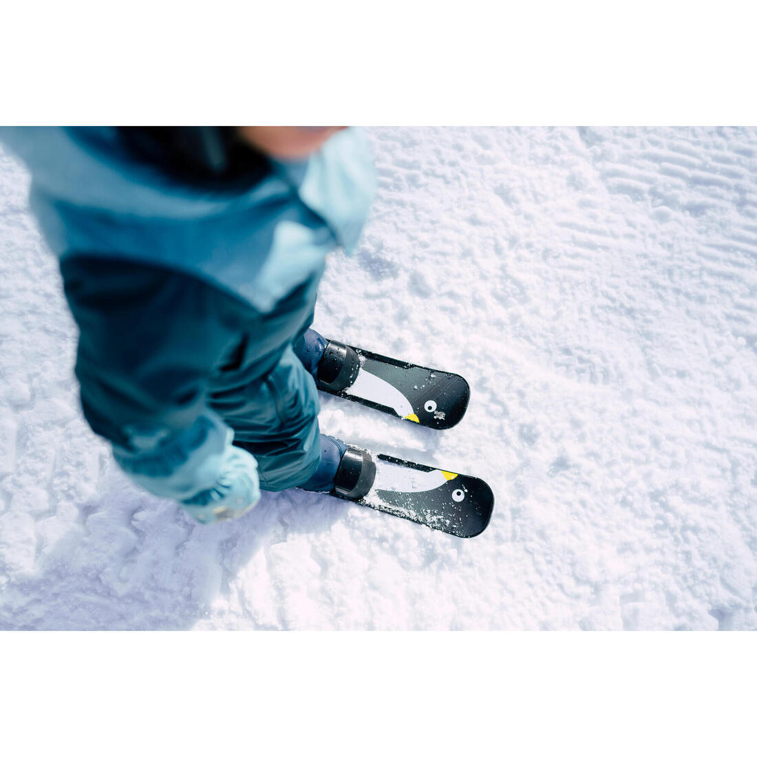 Unos primeros esquís perfectos para aprender a equilibrarse. Se calzan con botas de nieve para mayor comodidad.