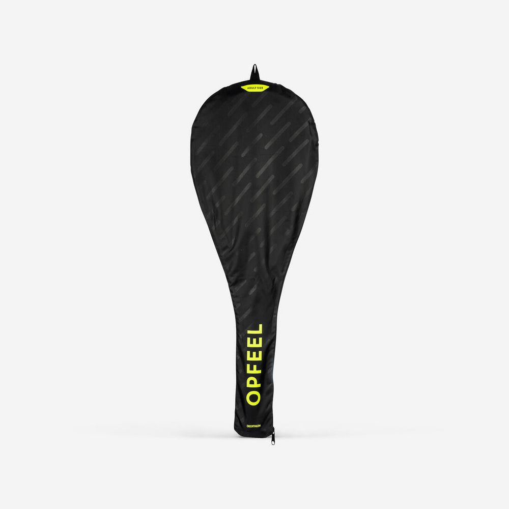El cierre amplio en la cabeza de la funda facilita la apertura y el cierre, para introducir rápidamente la raqueta.