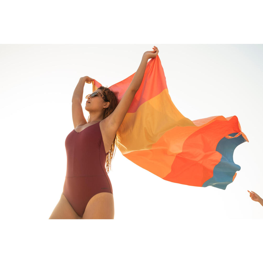 A partir de 2022, los trajes de baño para mujer diseñados por Decathlon no llevarán calcomanía protectora de plástico. Si alineamos todas las calcomanías, ahorraremos 940 km de plástico cada año.